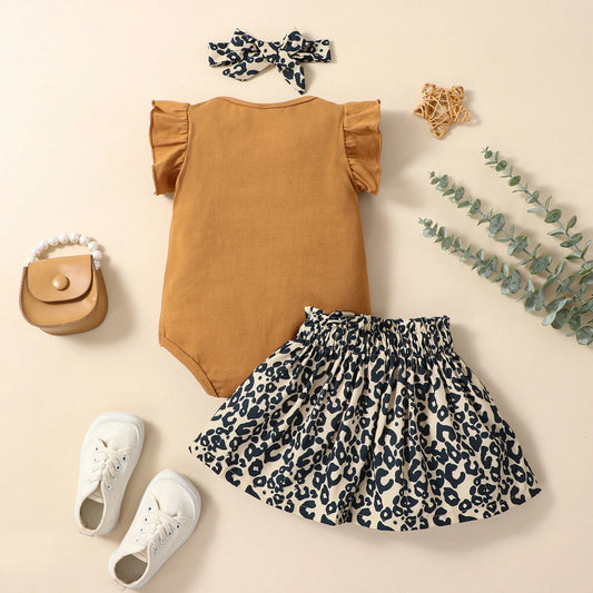 Baby Summer Clothing Newborn Infant Baby Girl Clothes Ruffled Sleeveless Jumpsuit+Leopard Skirt Headband 3Pcs Outfits