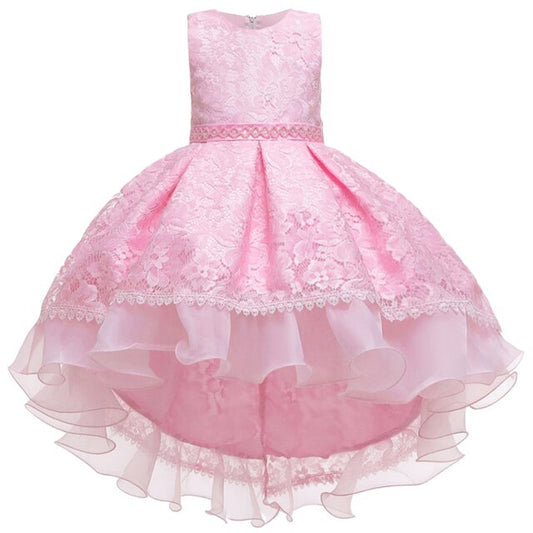 Children's Clothing Party Elegant Princess Long Tulle Baby Girls Kids Lace Wedding Ceremony Dresses