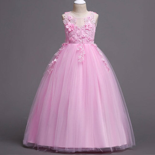 Children's Girl Wedding Flower Girl Wedding Ball Dress formal dress youth sleeveless Lace Applique dress 4~14 ysar