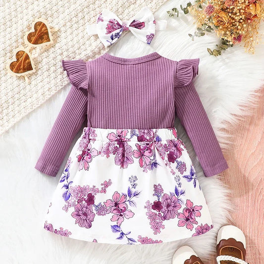 Dress For Kids 3 Months - 3 Years old Birthday Korean Style Long Sleeve Cute Floral Princess Formal Dresses Ootd For Baby Girl