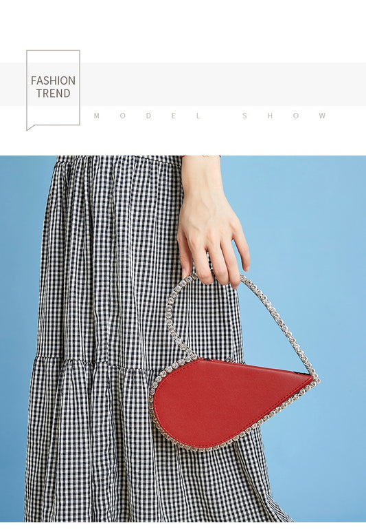 Diamond Red Heart Evening Clutch Bags Women Designer Chic Rhinestone Acrylic Handle Black Purse For Wedding Party