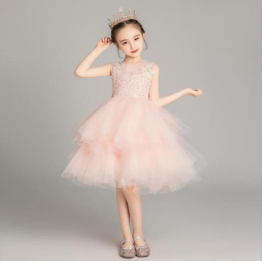 Elegant Flower Girls Dress Party Princess Dress Casual Kids Clothes Lace Sleeveless Dress Children's Vestidos For 2-14Y