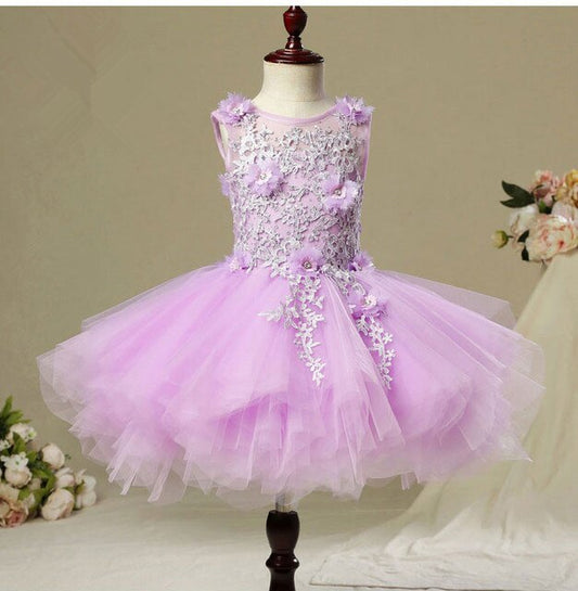 Elegant Long Trailing Appliques First Communion Dress Purple Tulle Ball Gown Kids Pageant Gown Flower Girl Dress for Weddings