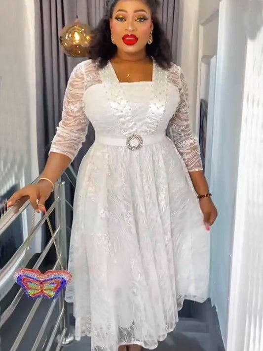 Elegant African Dresses for Women Plus Size Turkey Wedding Party Long Dress Dashiki Ankara Lace Outfits Robe Africa Clothing