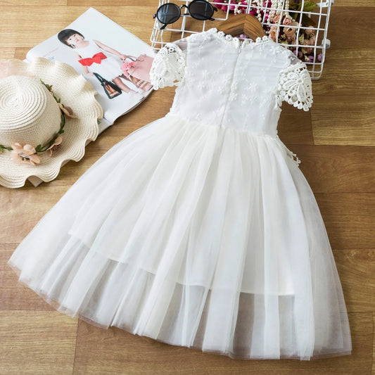Elegant Girl Flower Lace Dress Kid White Bohemia Tulle Gown Cute Baby Girl Birthday Evening Party Princess Dress Children Clothe