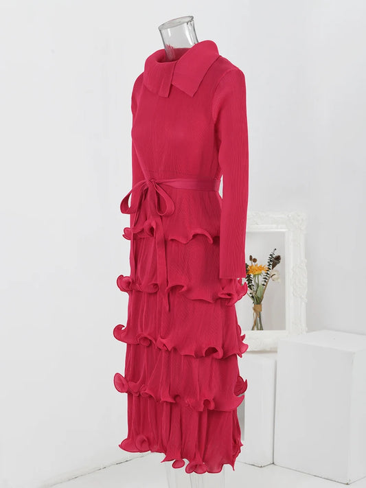 LANMREM Ruffles Pleated Dress For Women Lapel Long Sleeves Solid Color Elegant Dresses With Belt Female New Design 32A306Regular price $121.99Regular priceUnit price / per$256.99Sale price $121.99Sale