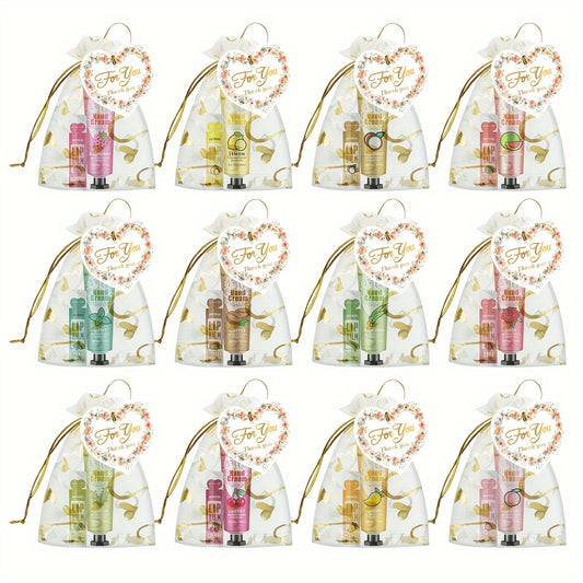 Lip Balm + Hand Cream Gift Set, 30 Sets/Box, Assorted 12 Flavor Lip Balm & Hand Cream Combo With Premium Organza Bag & Thank You Card, Ideal For Bridal Wedding Favors, Corporate Team Building, Party Gifts, Presents For Women