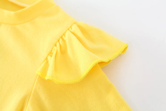 3Pcs Baby Girl Sunflower Lace Ruffle Sleeveless Romper Outfits Set