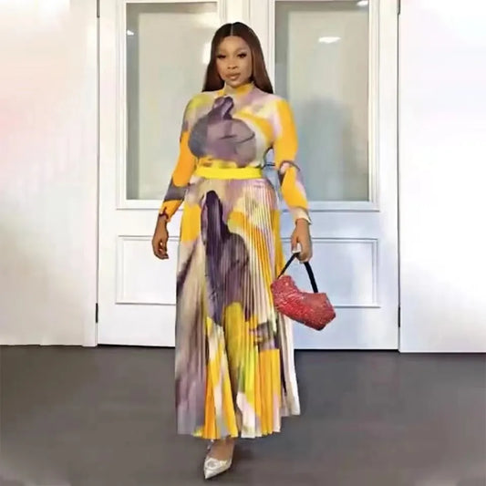 Pleated Suit Women Large Free Size Slim Casual Party Top and Skirt