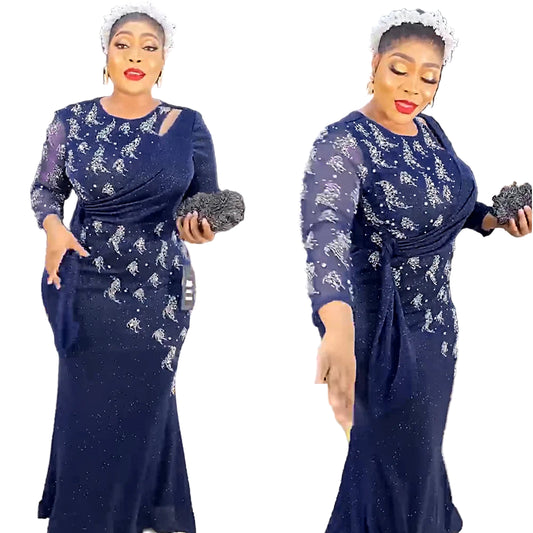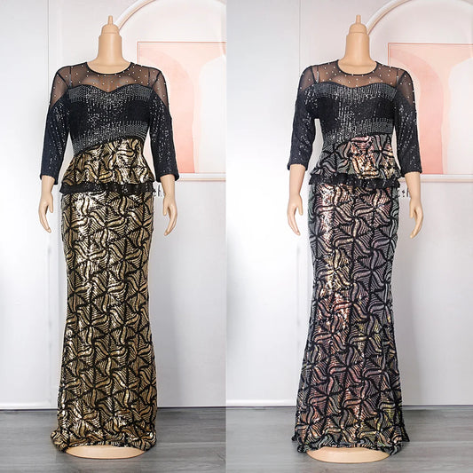 Plus Size African Party Long Dresses Women Sequin Evening Gowns