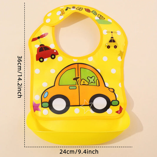 Security Cartoon Print Baby Bibs Boys Girls Bib Waterproof Soft Silicone Kids Burp Cloth Children Bib Feeding Bib with Pocket