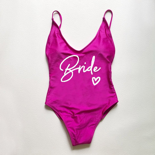 Sexy Padded One Piece Swimsuit TEAM Bride love Swimwear Women Summer Beachwear Bachelor Party Plus Size Bathing Suit Swimming