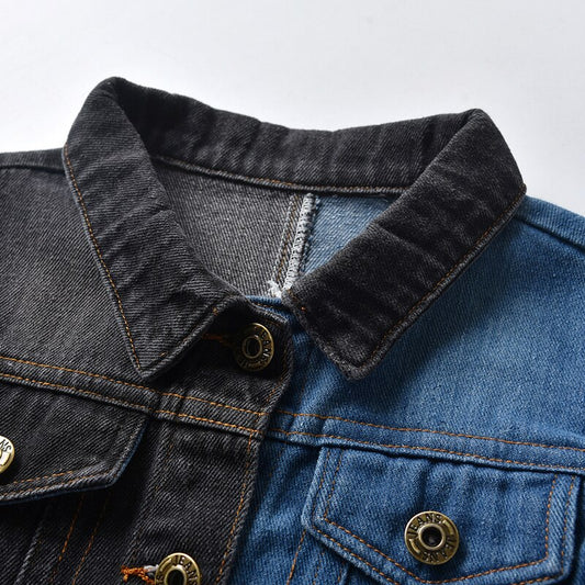 Spring And Autumn Fashion Patchwork Unisex Denim Coat Long-Sleeved Hole Children Outerwear