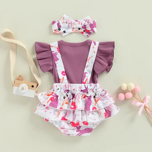 Cute Floral Romper Set for Baby Girls