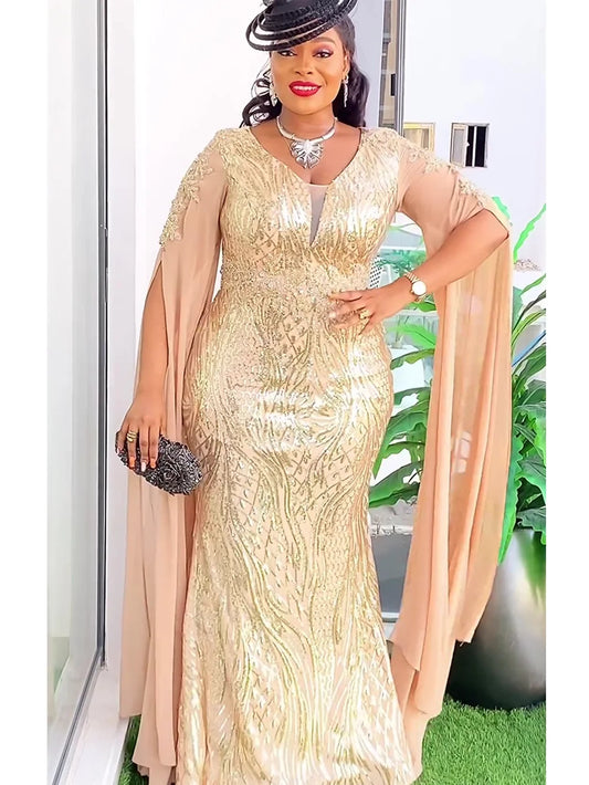 Plus Size Ankara Sequin Bodycon Maxi Gown