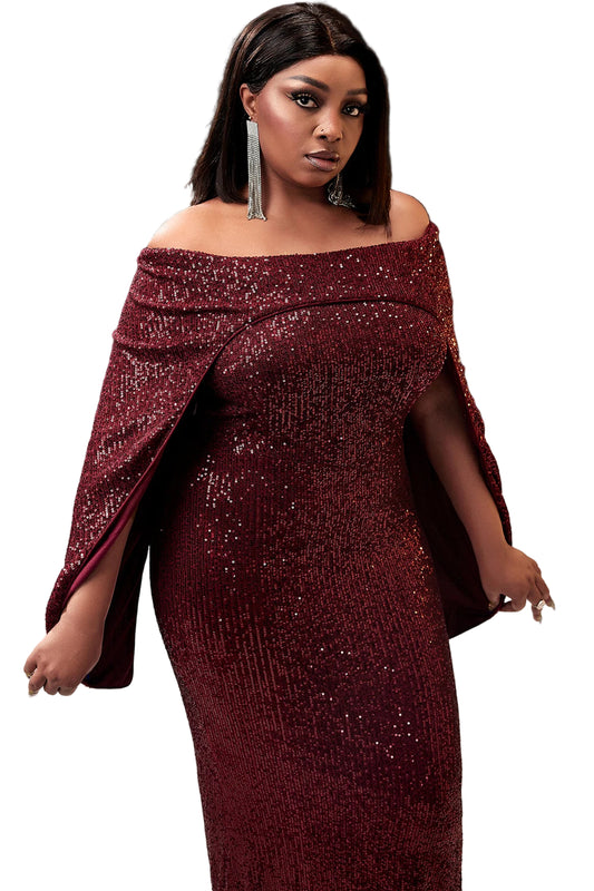 Women Plus Size Burgundy Sequin Formal Dress