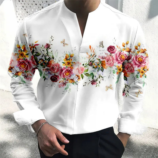Men's Shirt Floral Graphic Prints Stand Collar Outdoor Street Long Sleeve Print Clothing Apparel Fashion Designer Casual Comfort