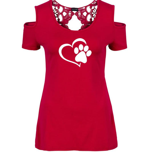 Paw Print Funny Summer Back Lace Dog Lovers T-shirt Women Travis Designs