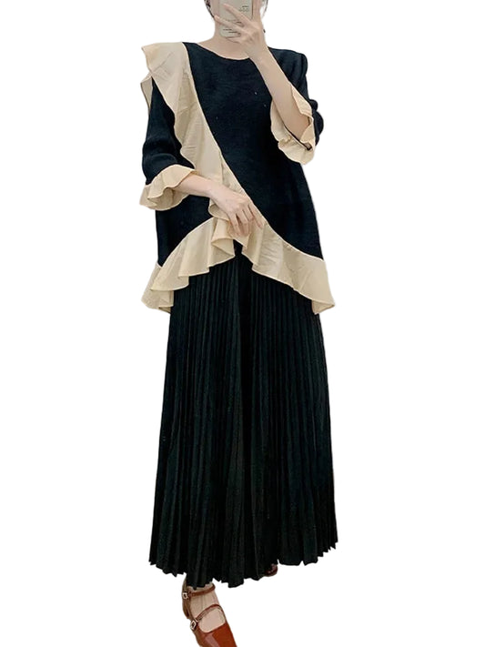 Women’s Ruffled Pleated Top & Wide Pants Set