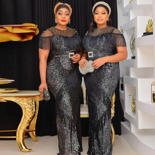 Plus Size Evening Dresses Women African Wedding Party Long Luxury Sequin Gown Bodycon Mermaid Maxi Dress