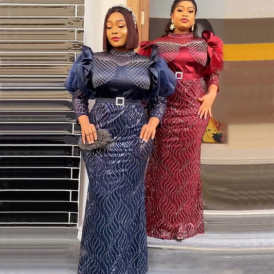 Plus Size Luxury Sequin Evening Party Long Dresses - Ballow Puff Dress