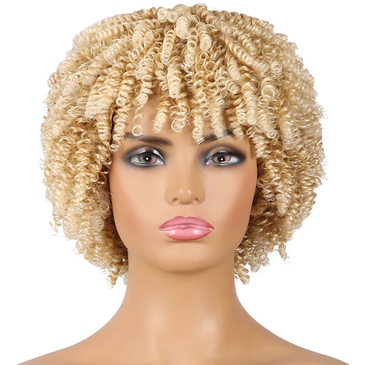 Short Kinky Curly Afro Wig with Bangs