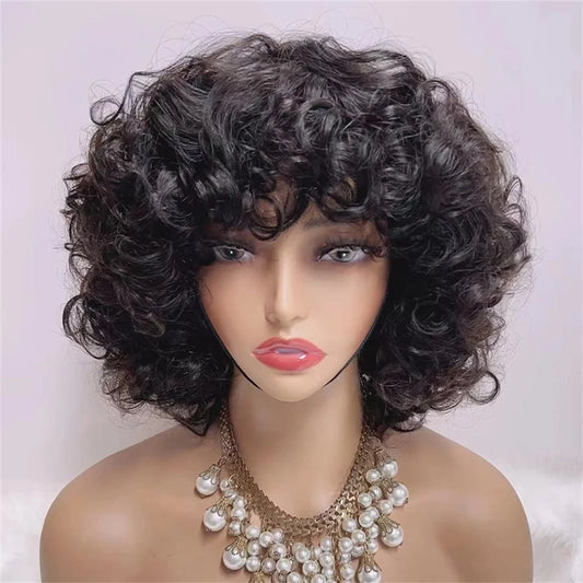 Jerry Curly Short Bob Human Hair Wigs With Bangs