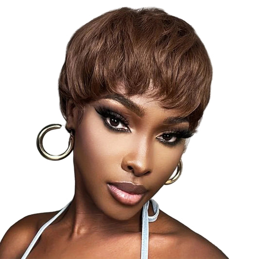 Brown Pixie Cut Human Hair Wig with Bangs