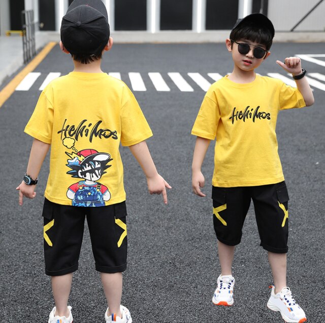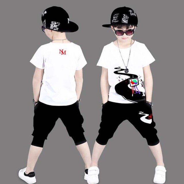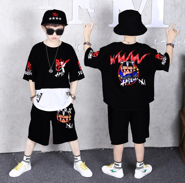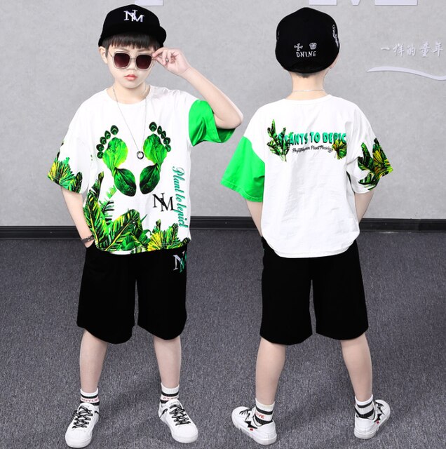 This 2 Pieces Suit Kids Teenage Boys Clothing Sets Hip-hop Dancing Sports Tracksuits Cotton T-shirt + Shorts Boys Summer Outfits is perfect for any occasion. With its stylish design and comfortable fit, this set is sure to be a hit with any child. Whether they're dancing, playing sports, or just hanging out, this set is sure to make them look and feel their best.