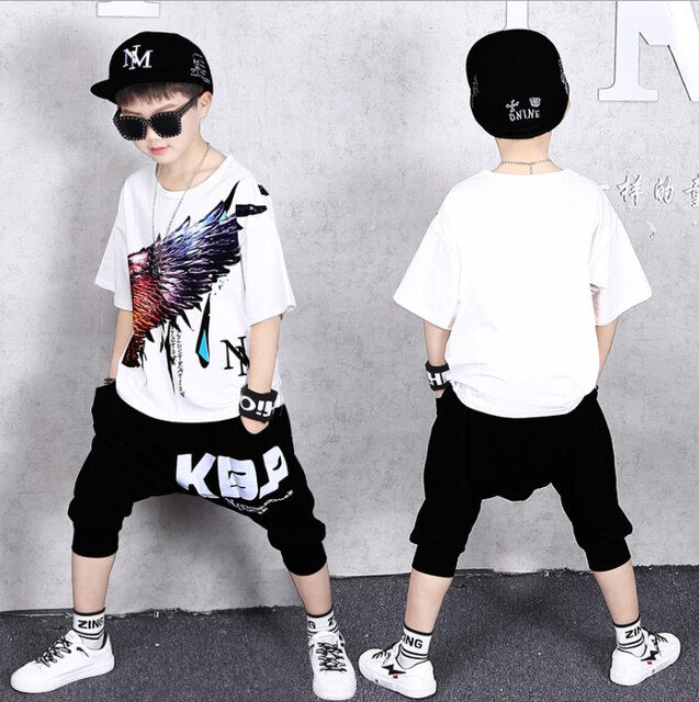2 Pieces Suit Kids Boys Clothing Sets Hip-hop Summer Outfits