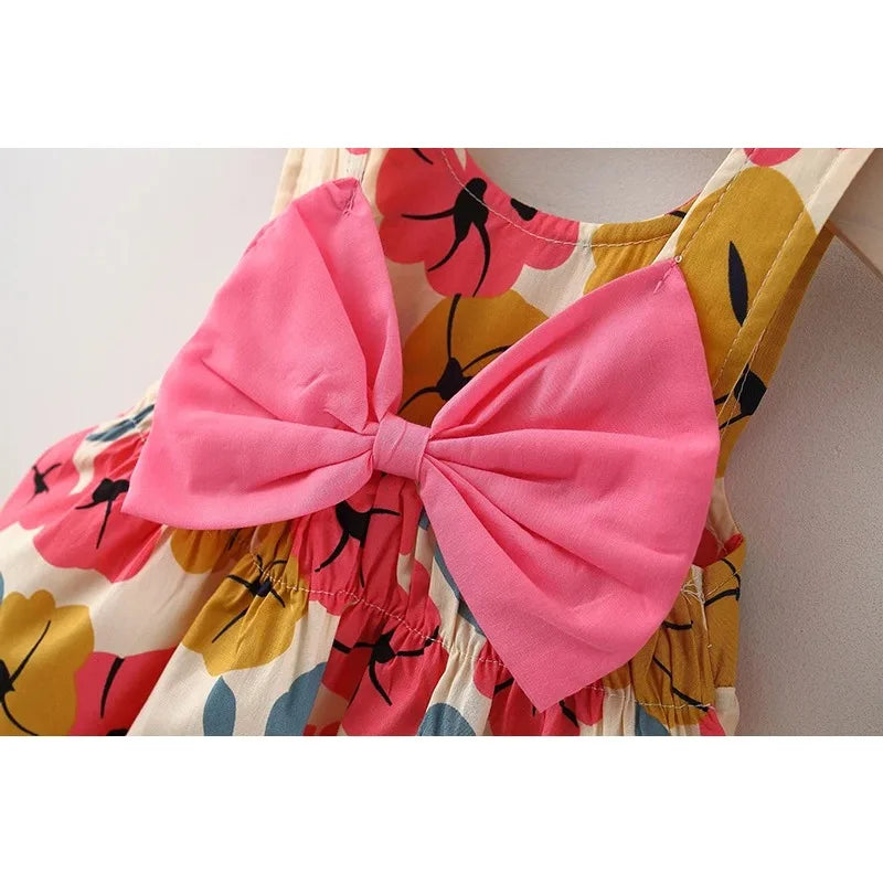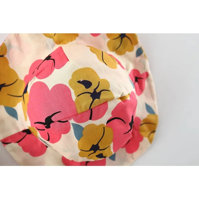 2pcs Summer Baby Girls Beach Princess Dress Cute Bow Flowers Sleeveless Cotton Toddler Dresses+Sunhat Newborn Clothing Set