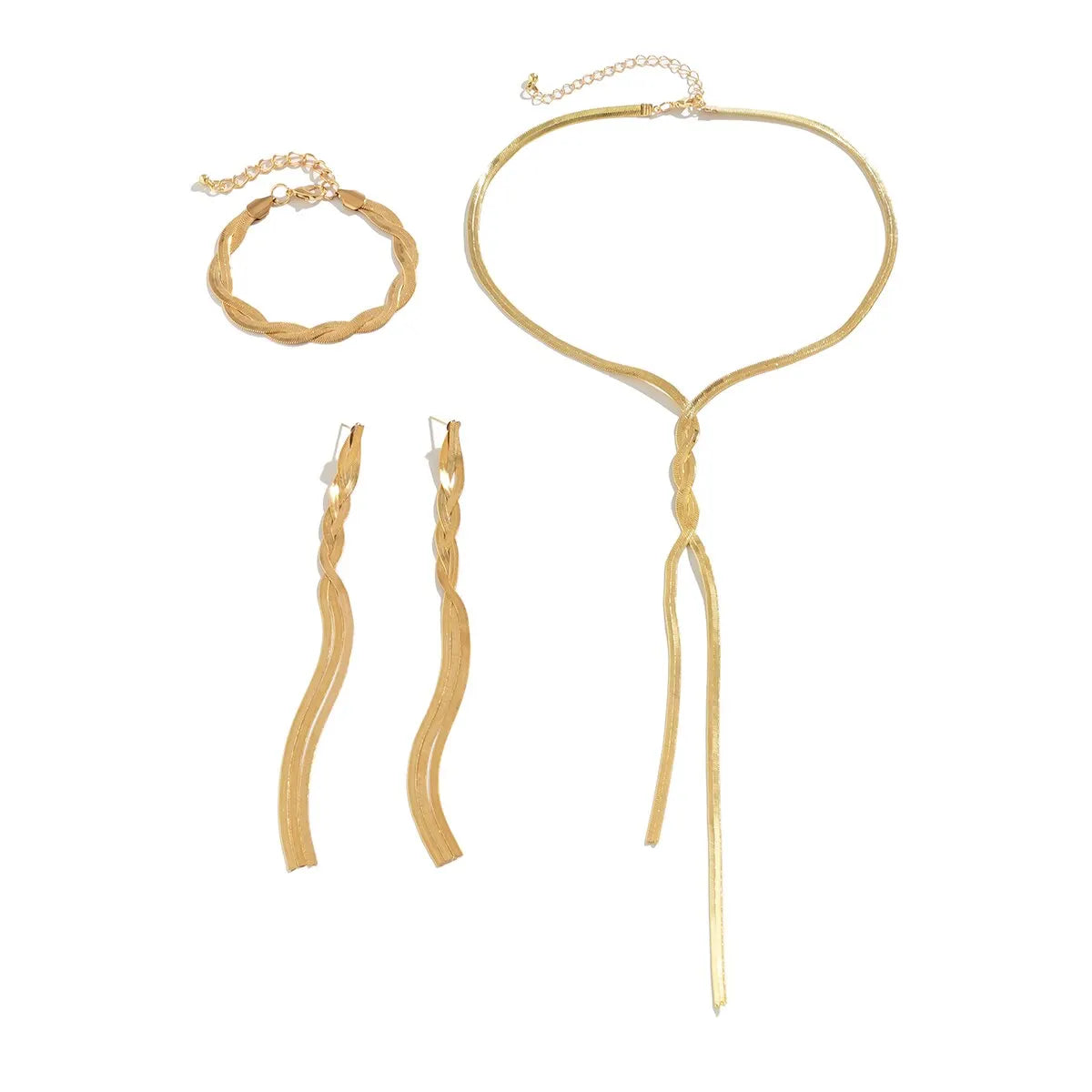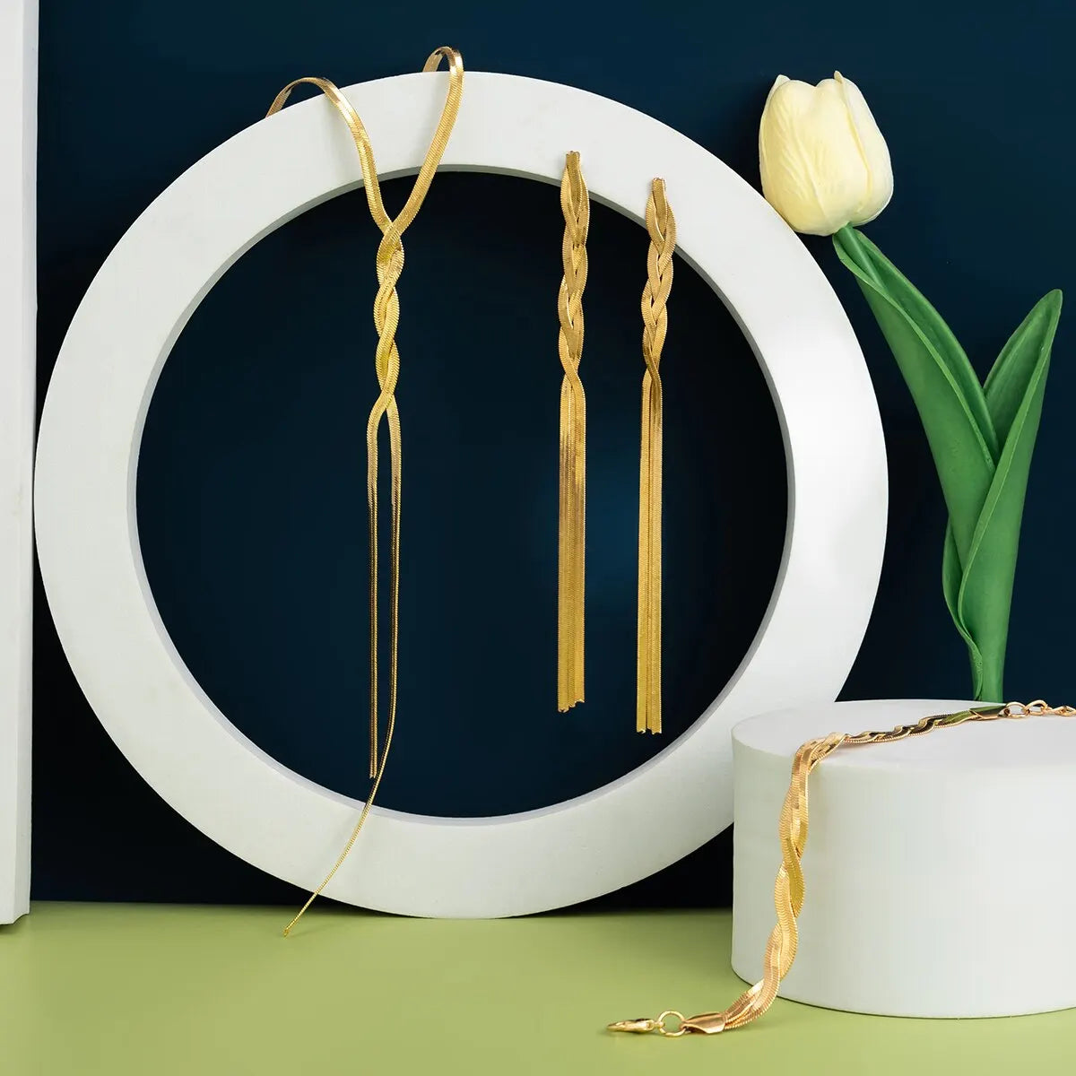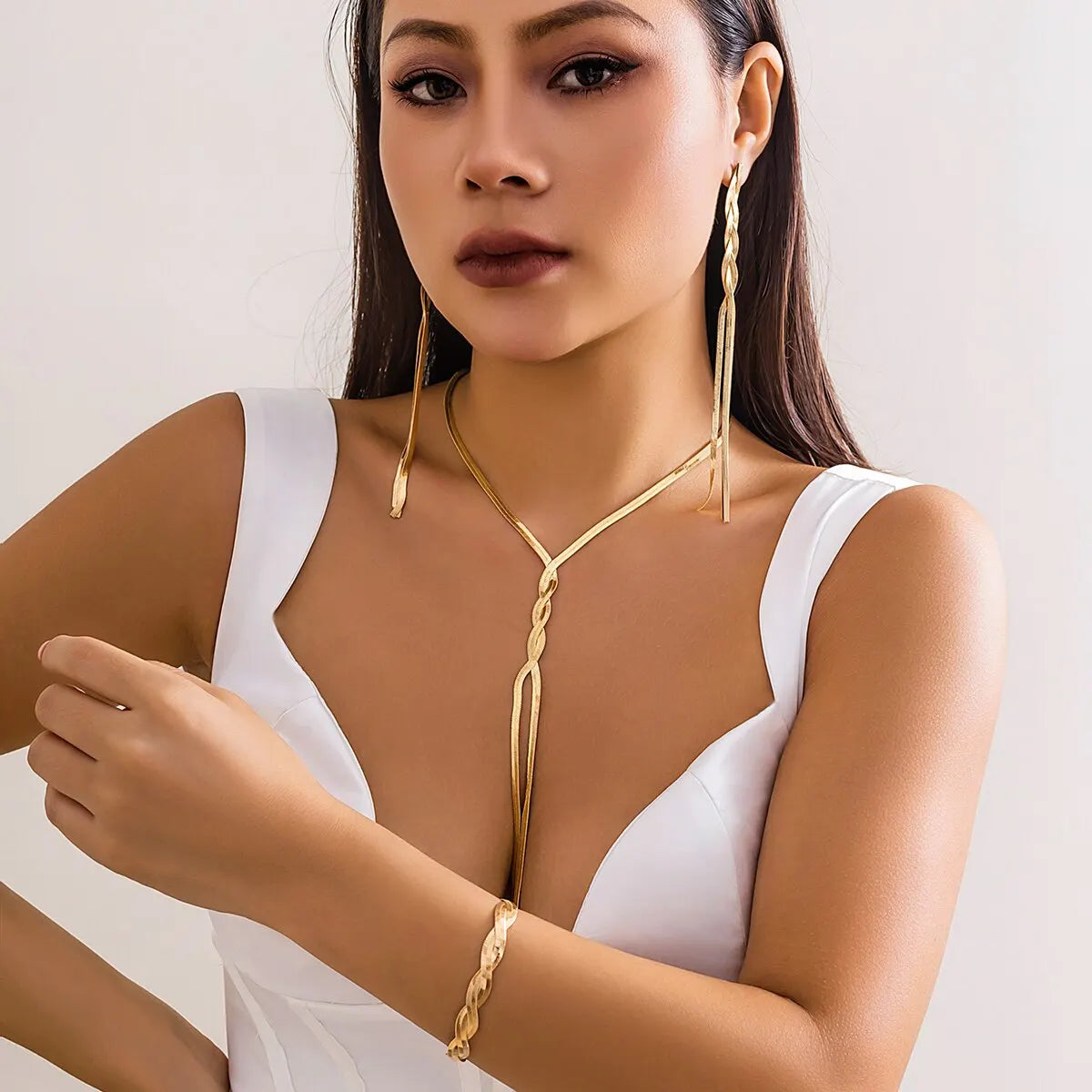 3Pcs Necklace Bracelet Earring Set Gold Tassel Chain Women Gift