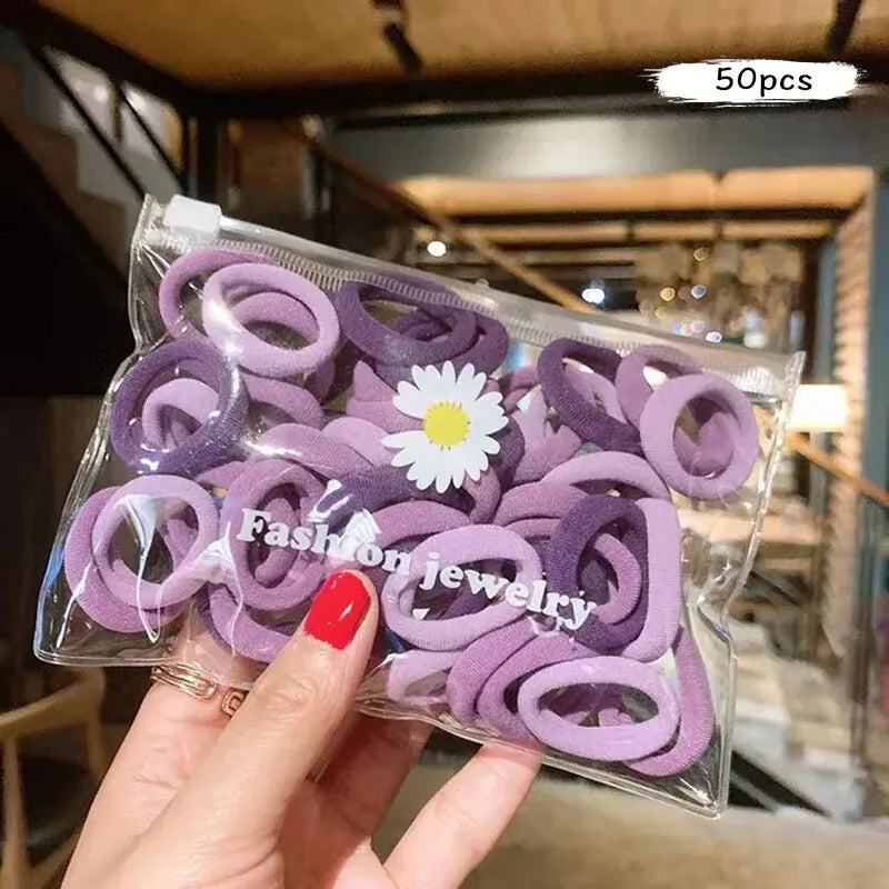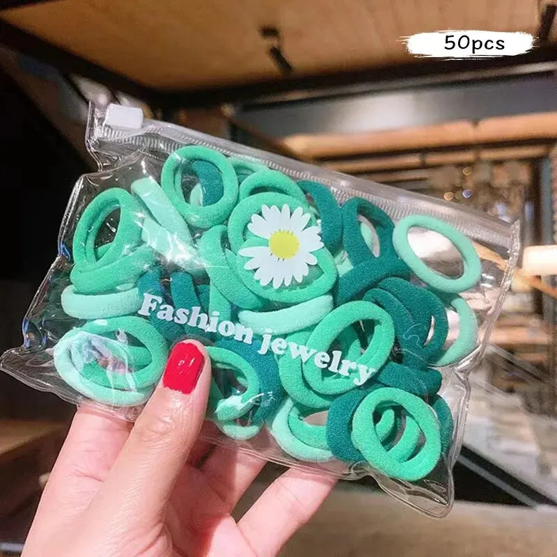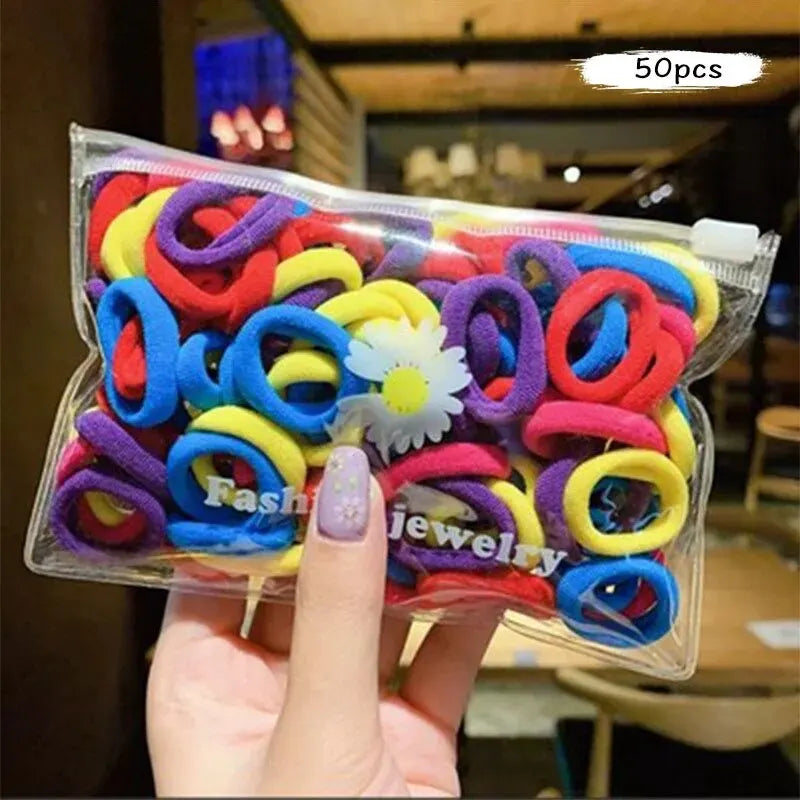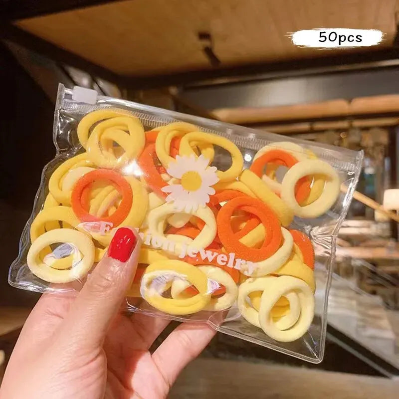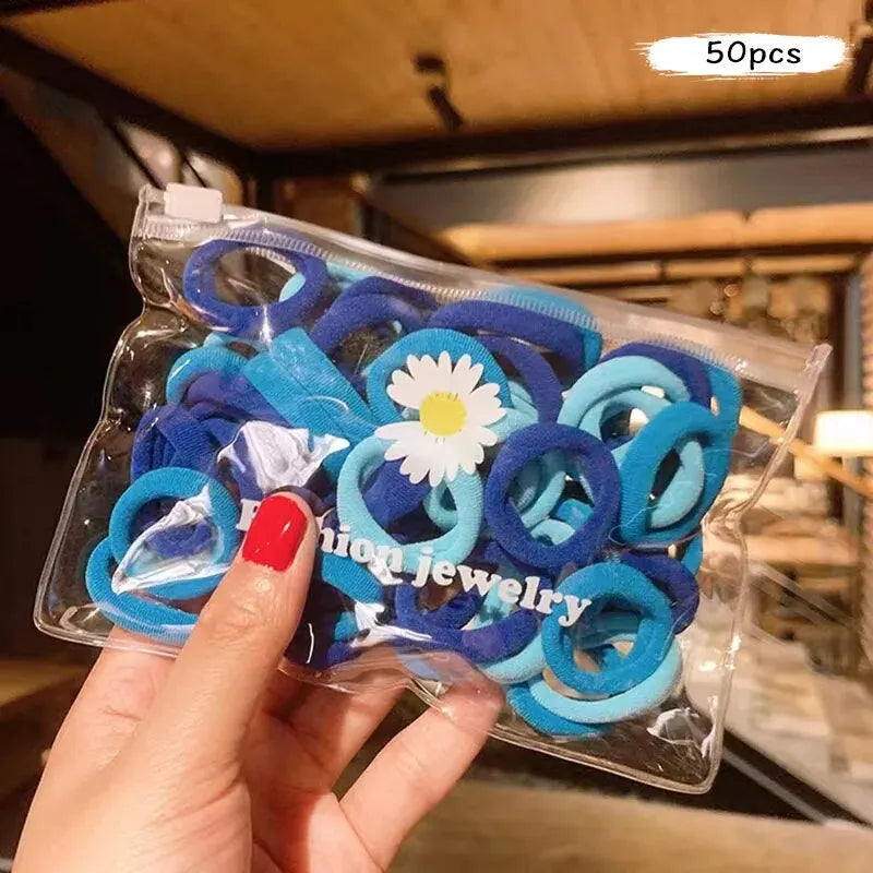 50Pcs/set Korean Hair Candy Color Hair Ring Girls Elastic Rubber Bands