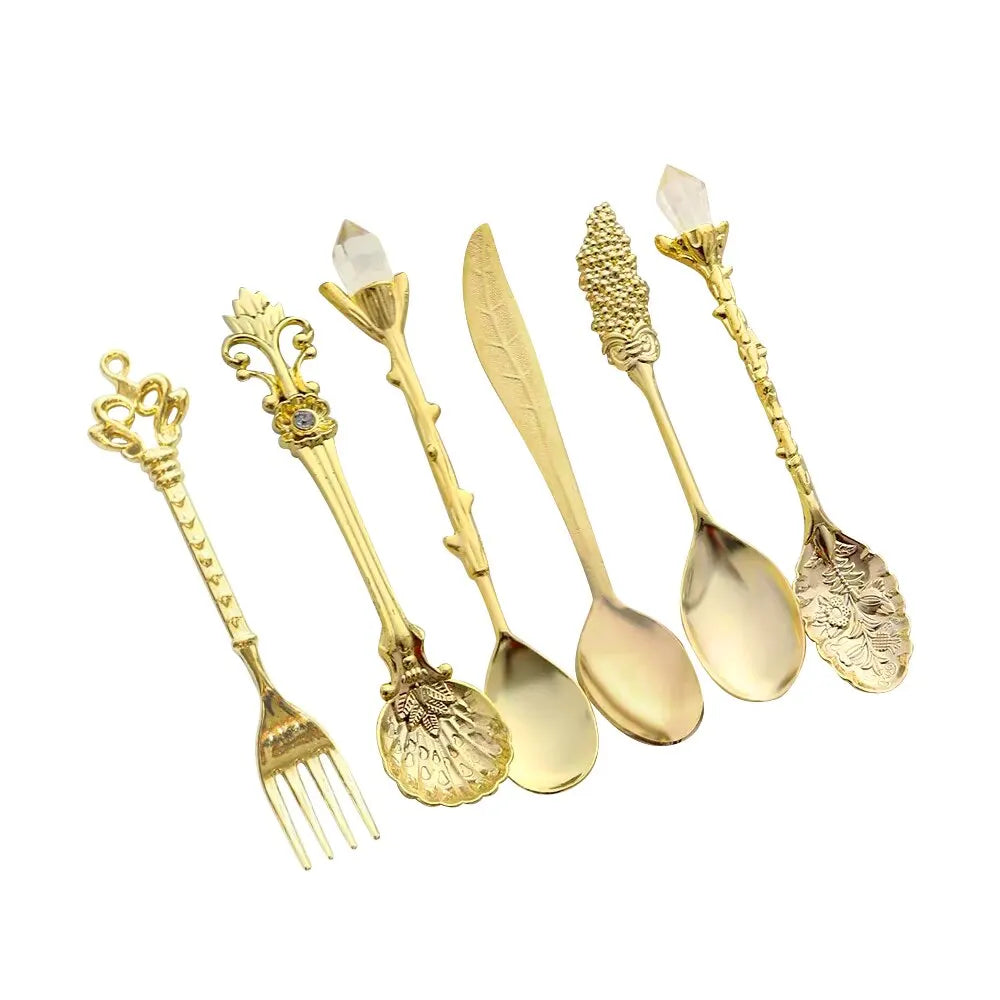 6Pcs/Set Vintage Carved Coffee Spoon Teaspoon Retro Zinc Alloy Dessert Coffee Tableware Spoons Cutlery Kitchen