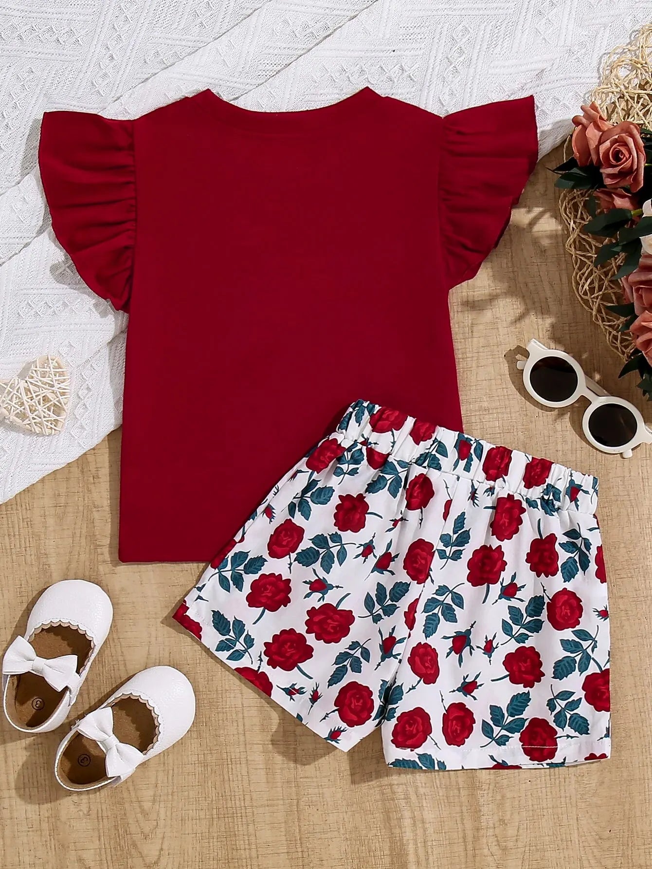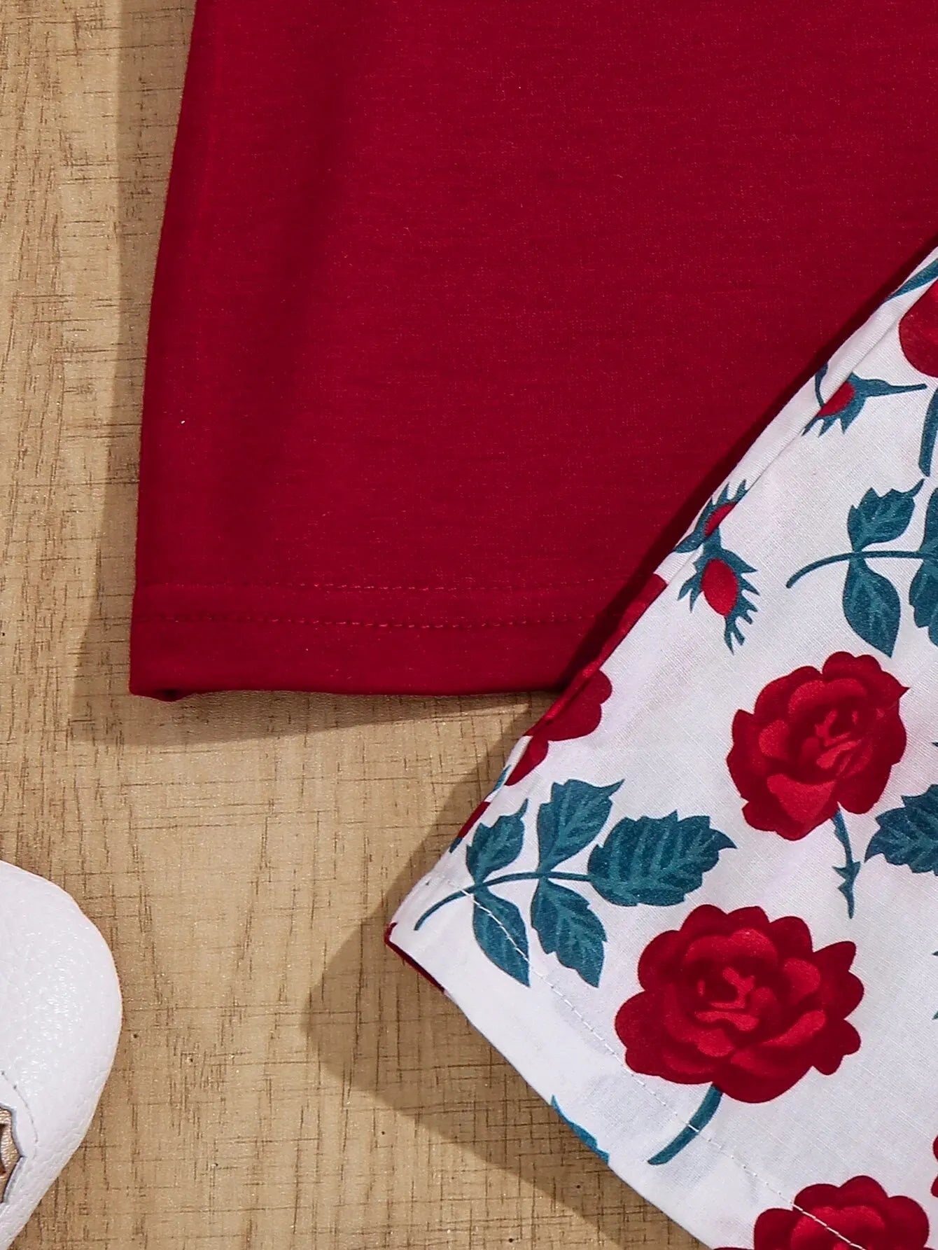 96%Polyester 4%Spandex 100%cotton Girl's Rose Set