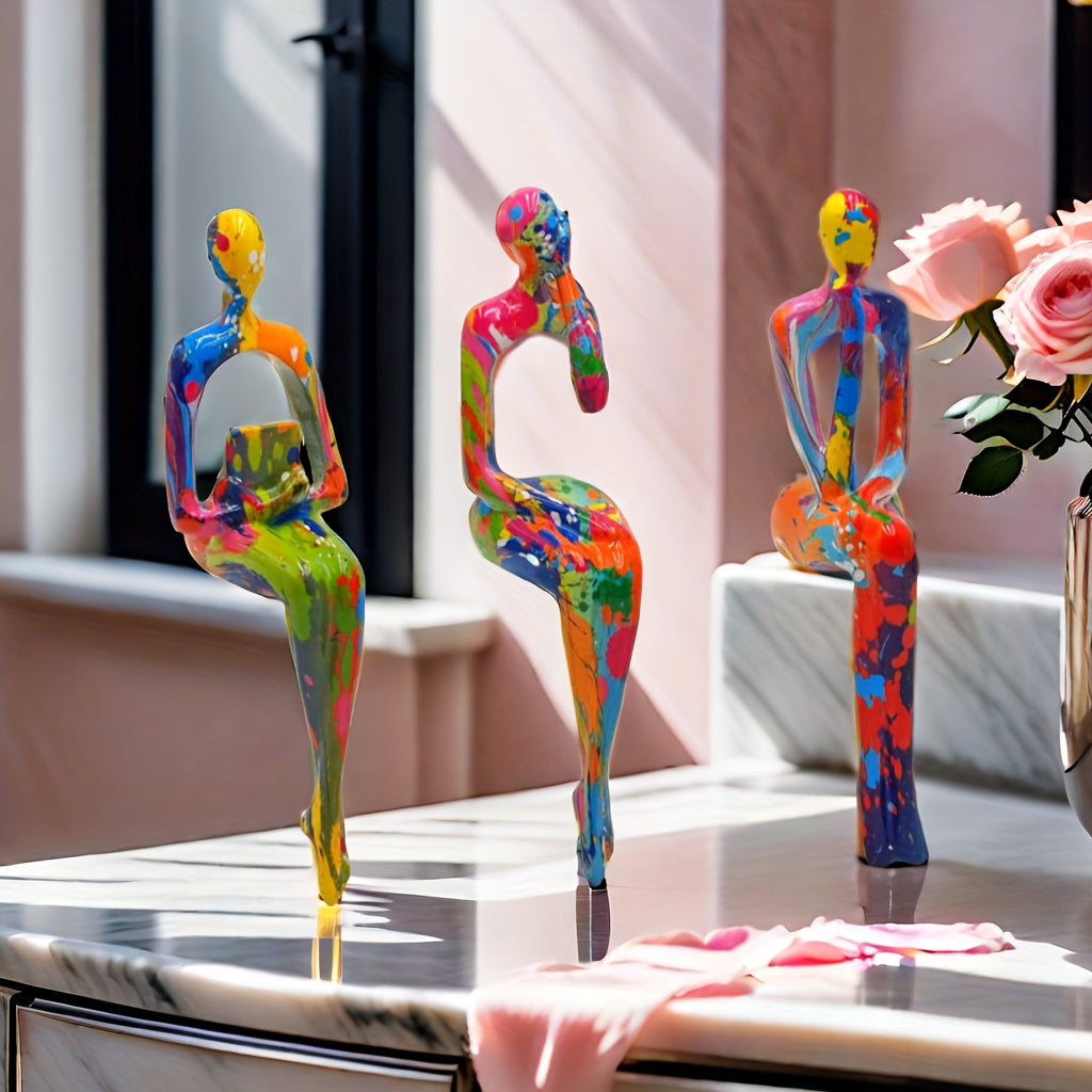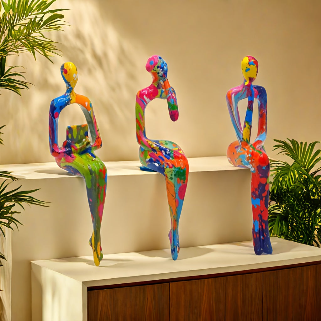Elevate your space with this 3-piece set of abstract thinking figure statues, expertly crafted from durable resin. These modern art sculptures bring a sophisticated touch to any home or office, serving as striking accents that inspire creativity and conversation. Perfect for interior design enthusiasts, they effortlessly blend with various decor styles and can be used as unique DIY decoration elements to personalize your environment. Add a thoughtful, artistic vibe that transforms ordinary rooms