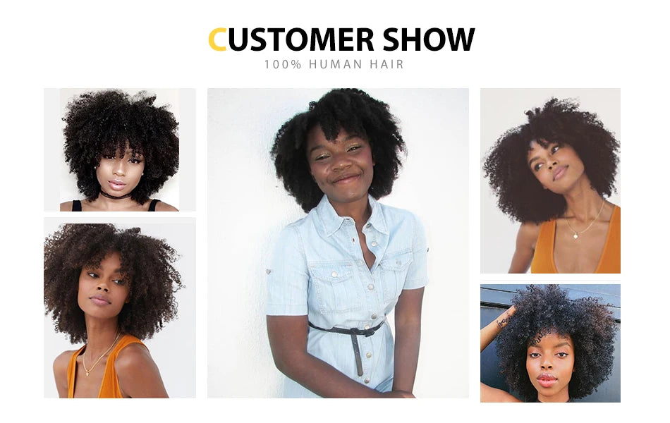Afro Kinky Curly Wigs Full Machine Remy Brazilian Short Human Wig