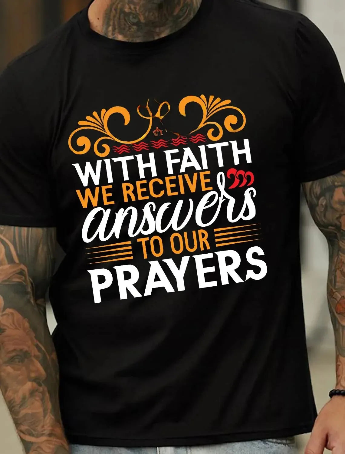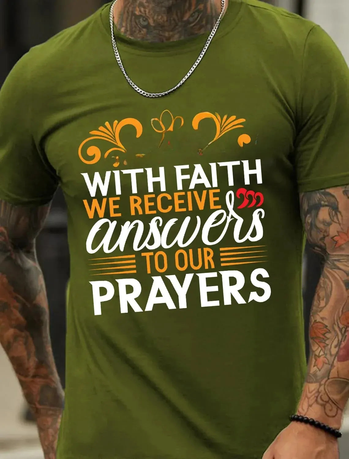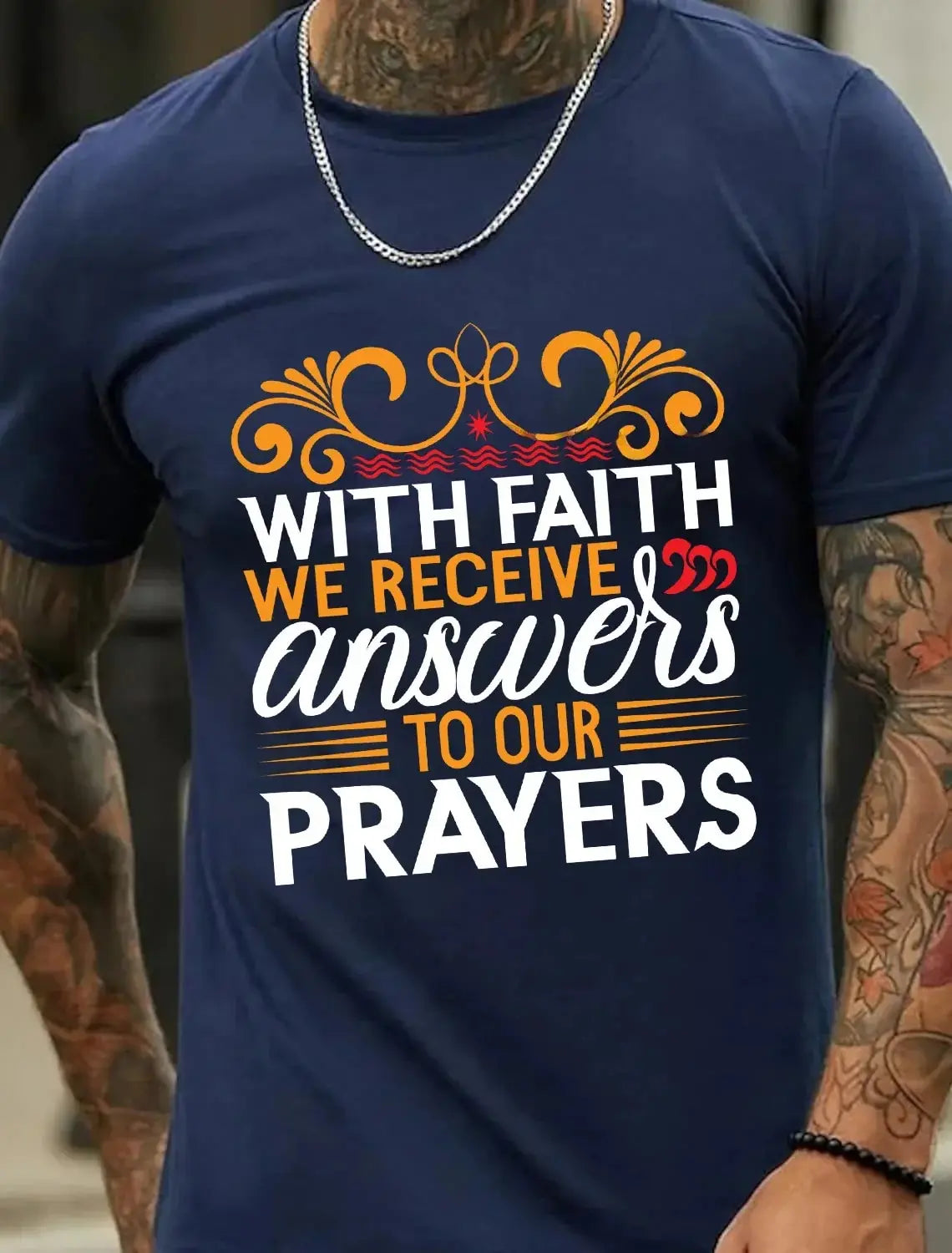 American Style Loose Round Neck Short Sleeve T-shirt Men Faith We Receive Printed Design Cotton Fabric