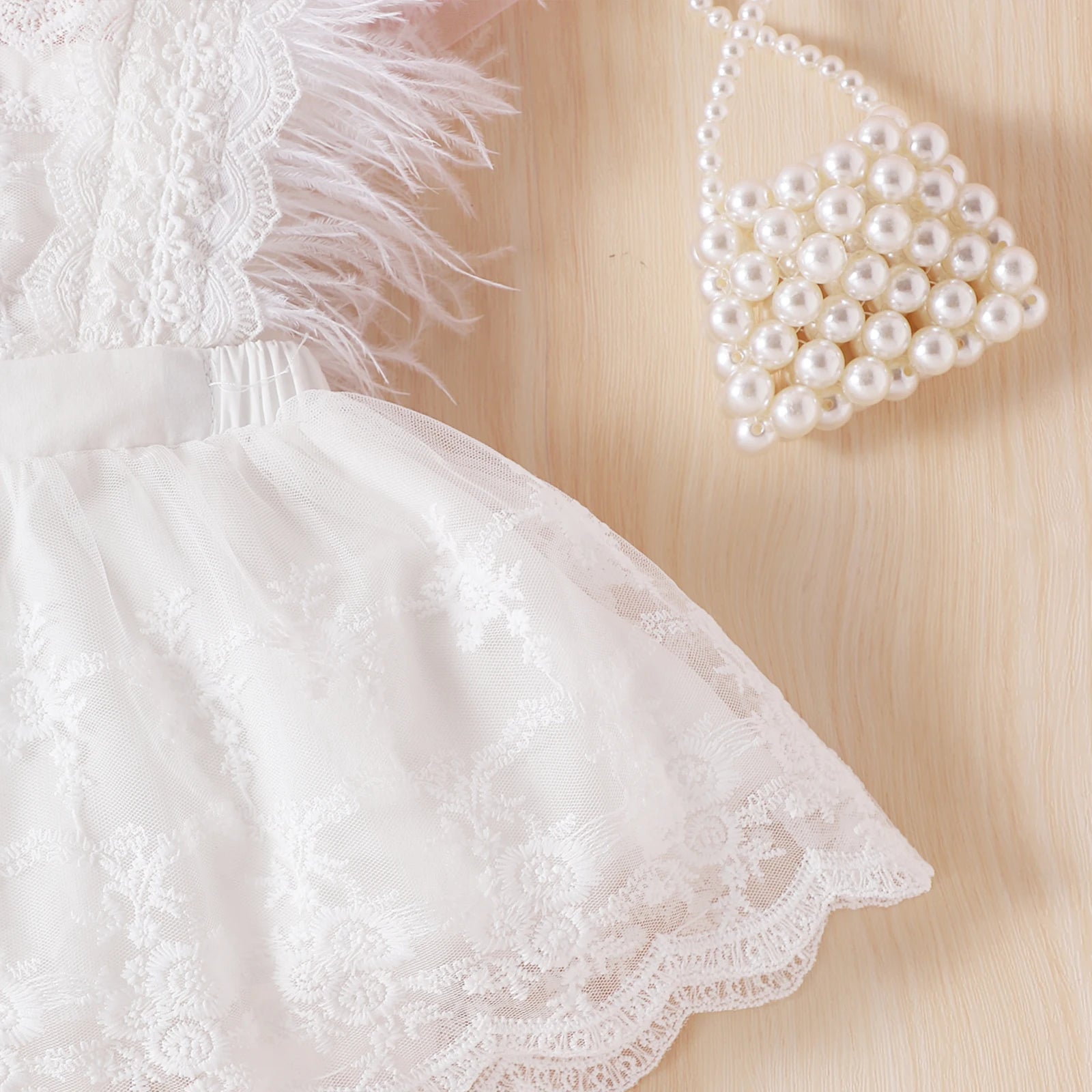 Baby Girl Spring And Autumn Feather Dress Summer Lace Princess Dress