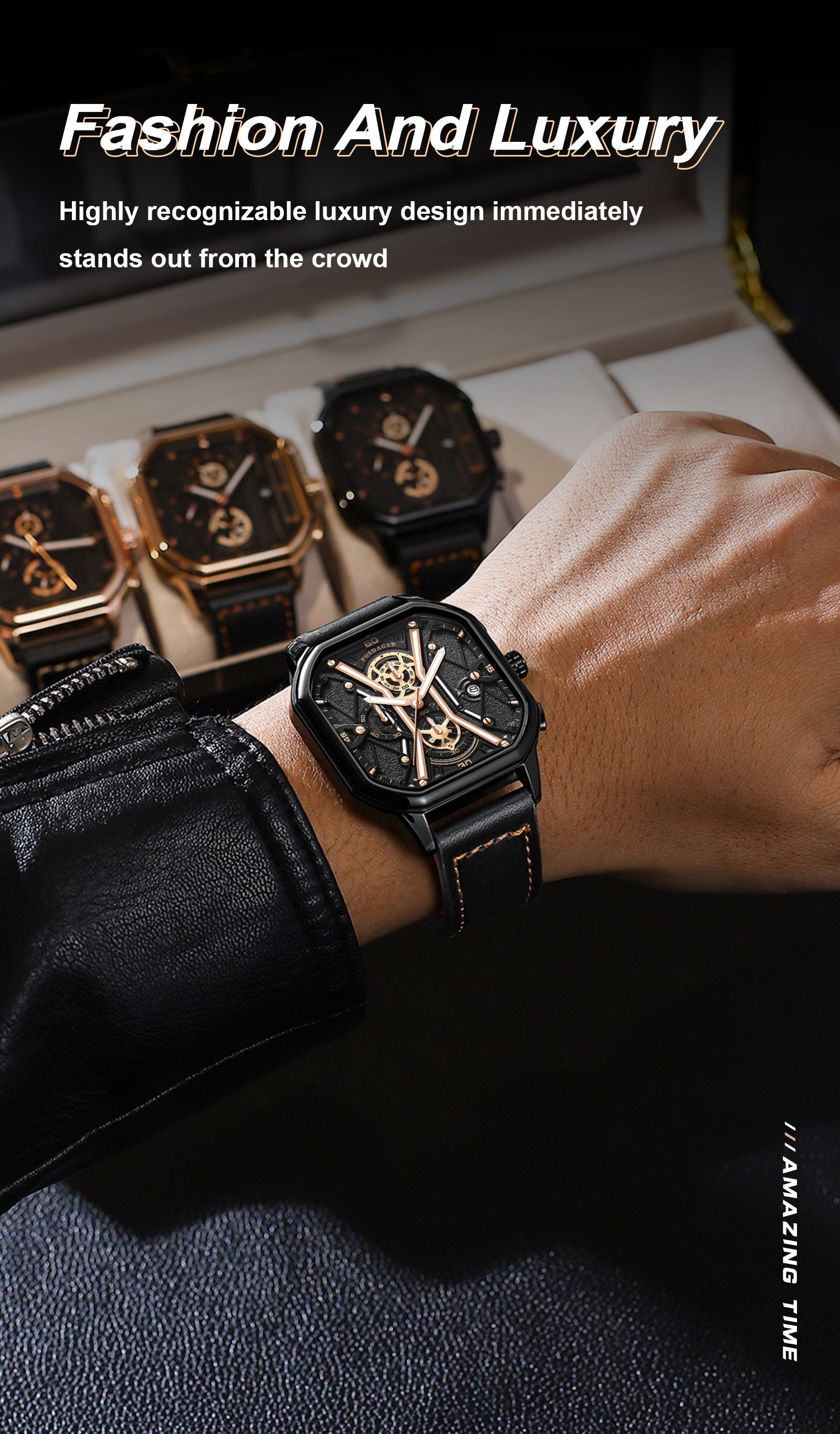 BeniSap Fashion Men Wristwatches Luxury Chronograph Luminous Waterproof Date Man Watch Square Dial Leather Quartz Men Watches