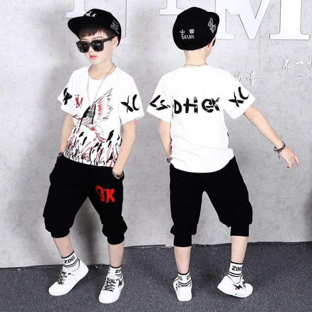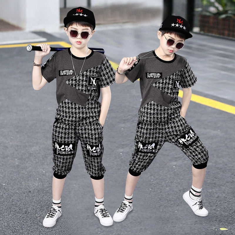 Boy Sets Summer Kids Clothes Fashion Short Sleeve T-shirt Pants School Children Sport Suit