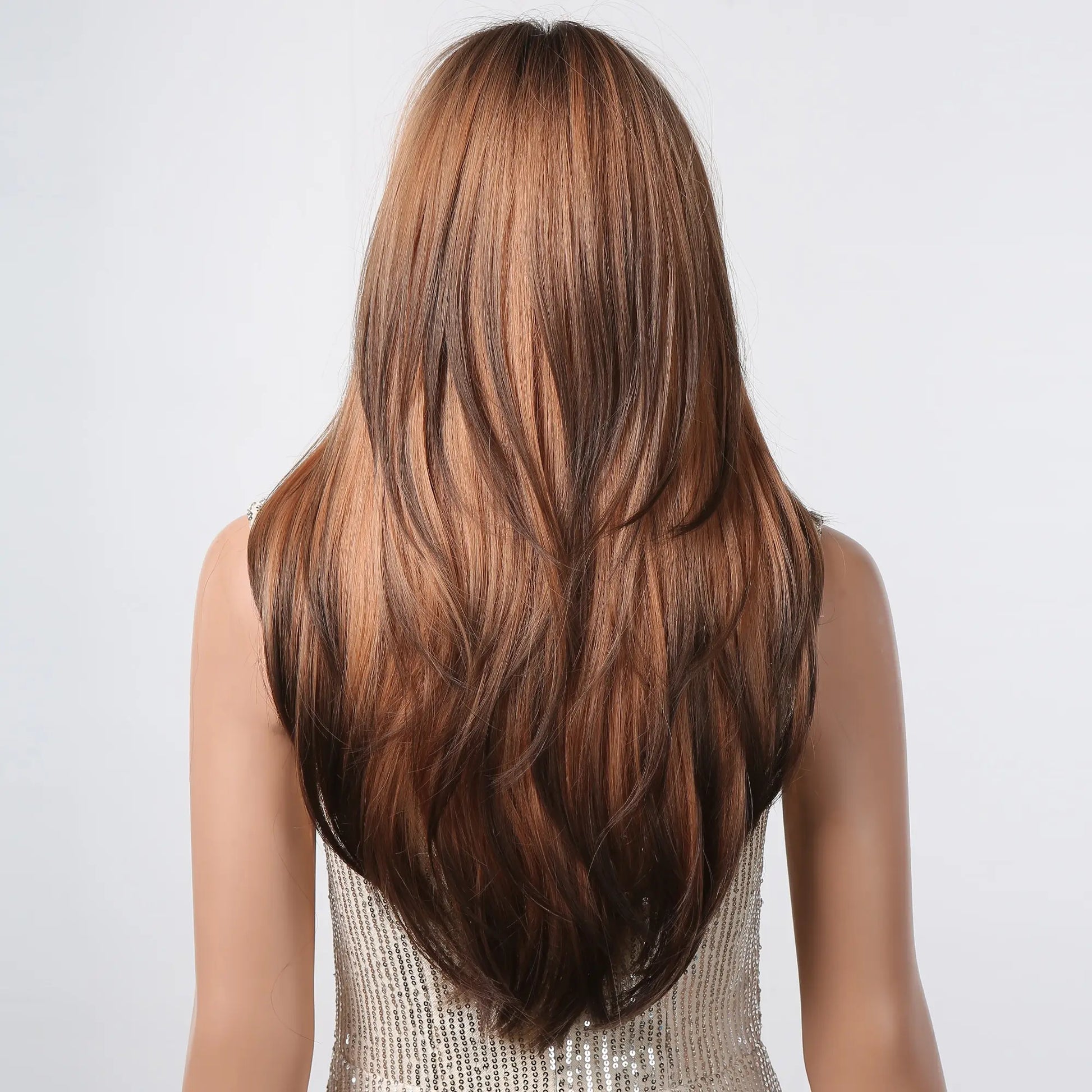 Brown to Light Ash Brown Blonde Wigs with Bangs Layered Synthetic Wigs for Women Long Natural Hair Cospay Party