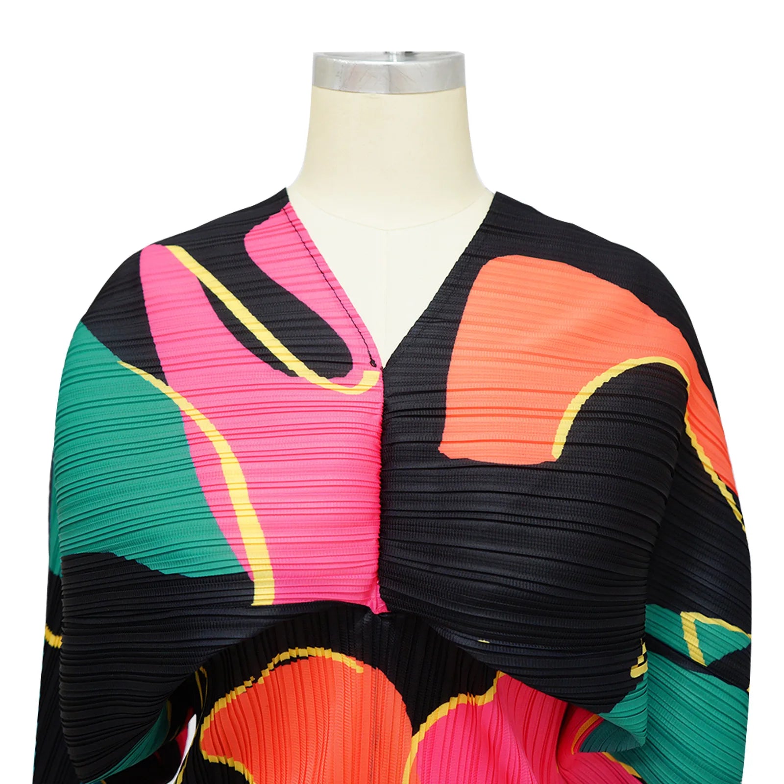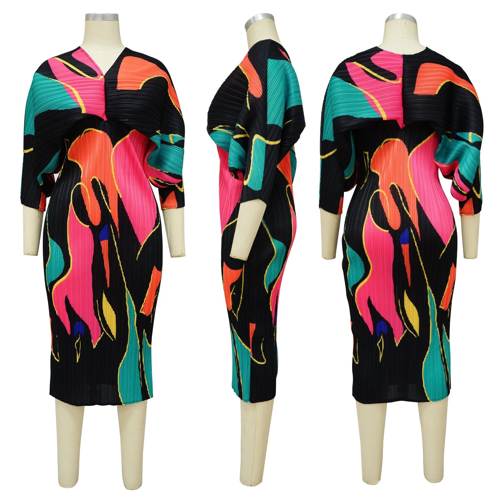 This casual loose dress is perfect for any occasion. It features a long batwing sleeve, a V-neckline, and a pleated skirt. The fabric is a combination of polyester and spandex, making it comfortable and stretchy. It is available in a variety of colors and sizes, making it perfect for any age. The dress is perfect for streetwear and is sure to make a statement.