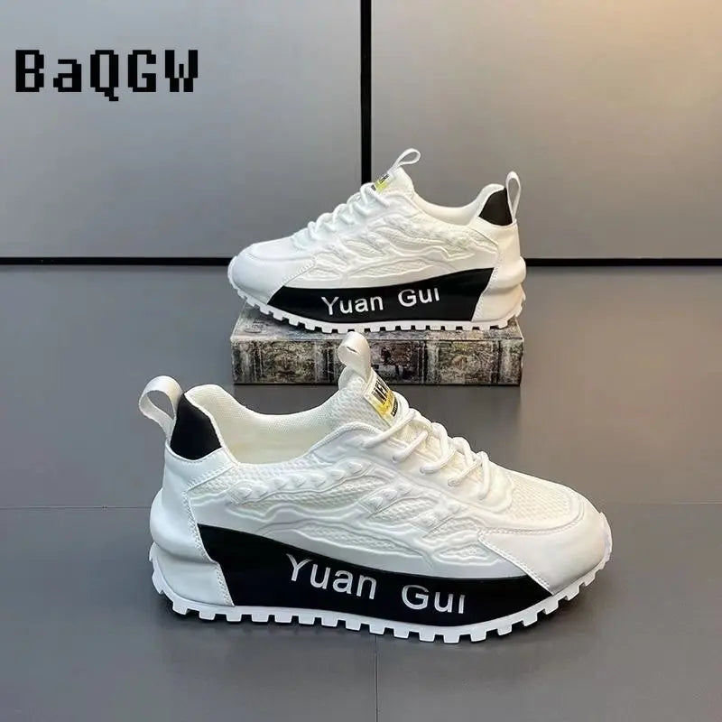 Chunky Sneakers Men Running Shoes Casual Breathable Leather Mesh