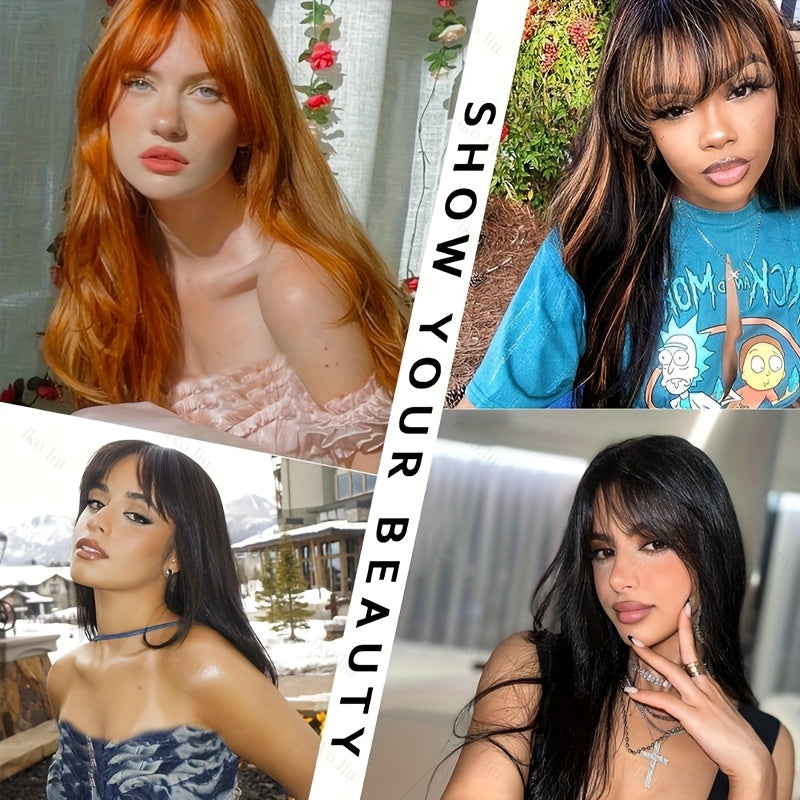 Experience effortless style with the CIVRIE 26" Glueless Black Wig, featuring long straight synthetic hair and trendy curtain bangs. Designed with pre-bleached lace and a realistic scalp, this wig offers a natural appearance and full-bodied look. Made from upgraded premium fibers, it ensures durability and softness. The easy no-glue application means you can enjoy a secure, comfortable fit without hassle—perfect for everyday wear or special occasions. Enhance your look instantly with this versatile, natural-feeling wig.