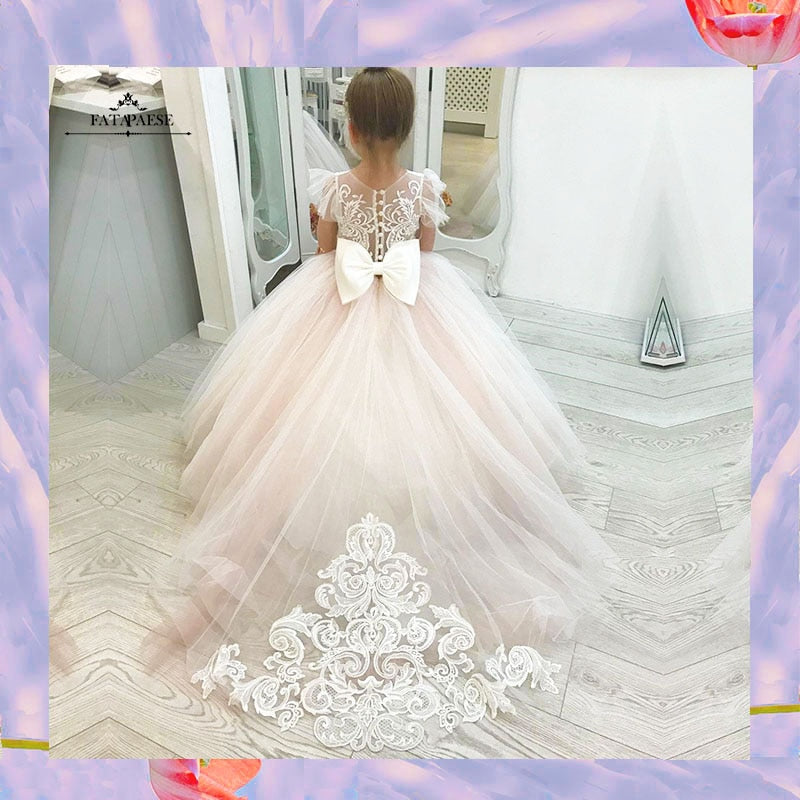 Introducing Flower Girl Dress Tulle Party Dress Lace Dress. This exquisite dress is perfect for any special occasion. The floor-length silhouette and scalloped neckline create a beautiful look. The tulle fabric is adorned with appliques, beading, and a bow for a truly unique look. The sleeveless style and regular sleeve style make this dress a timeless classic.