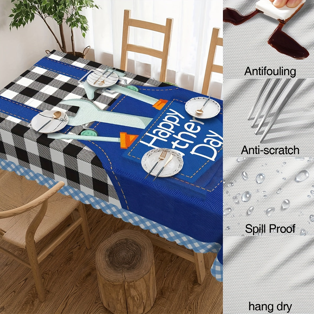 Celebrate Father's Day in style with this Blue and White Checkered Tablecloth. Designed to bring a fresh, classic charm to your dining area, its vibrant checkered pattern adds a cozy yet elegant touch to any meal. Made from durable, easy-to-clean fabric, it ensures lasting beauty and hassle-free maintenance. Perfect for both indoor and outdoor gatherings, this table cover creates the ideal backdrop for memorable moments with Dad. Elevate your celebration and make every meal feel special with this charming, practical tablecloth.