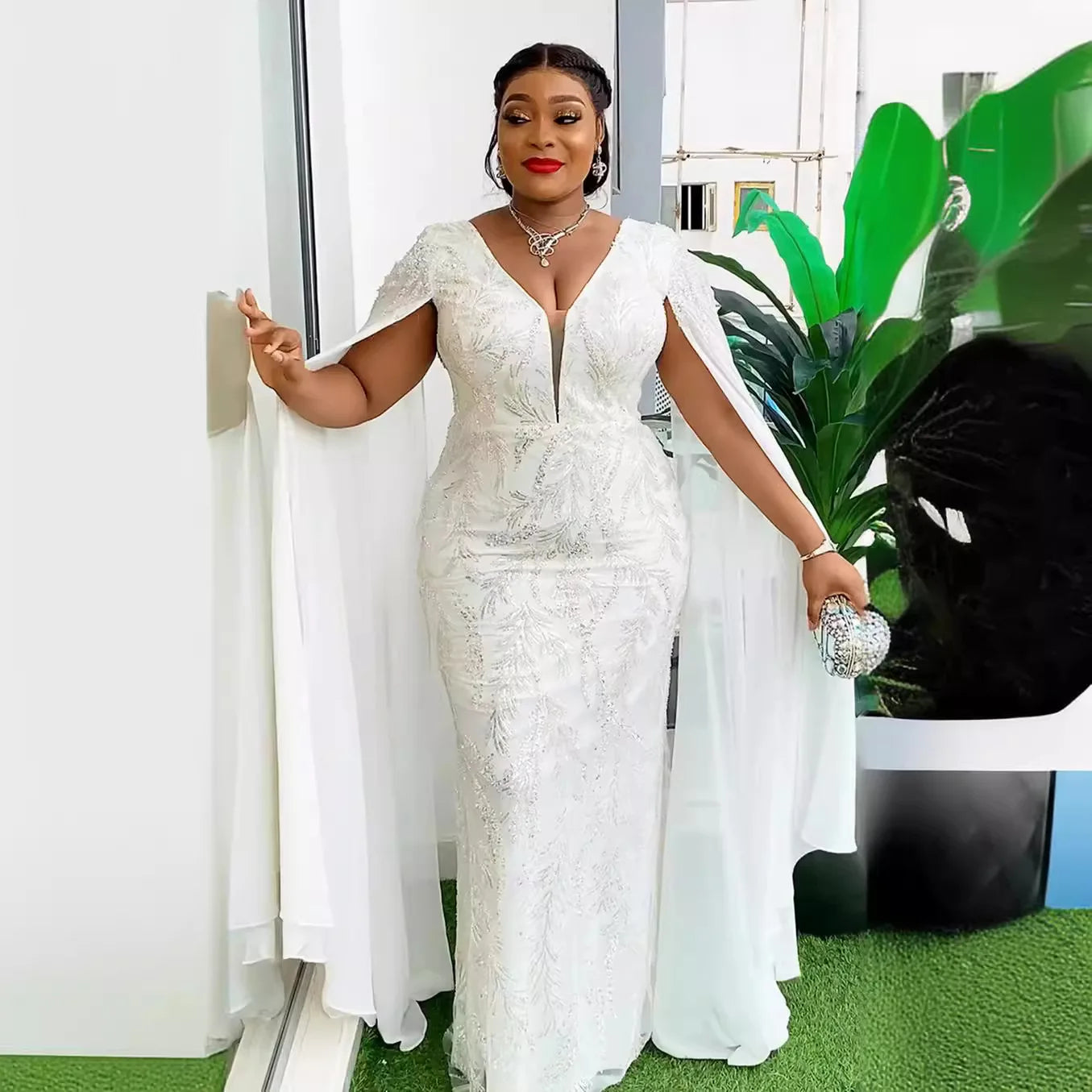Make a stunning statement in the Lenis Party Wedding Dress, where elegance meets glamour. This exquisite maxi dress features a flattering V-neckline and shimmering sequin detailing that catches the light beautifully, ensuring you radiate confidence at any celebration. The flowing silhouette provides graceful movement while the luxurious sequin embellishments add that touch of sophistication every special occasion demands. Whether you're walking down the aisle or dancing the night away, this dress transforms you into the vision of refined beauty you've always imagined.