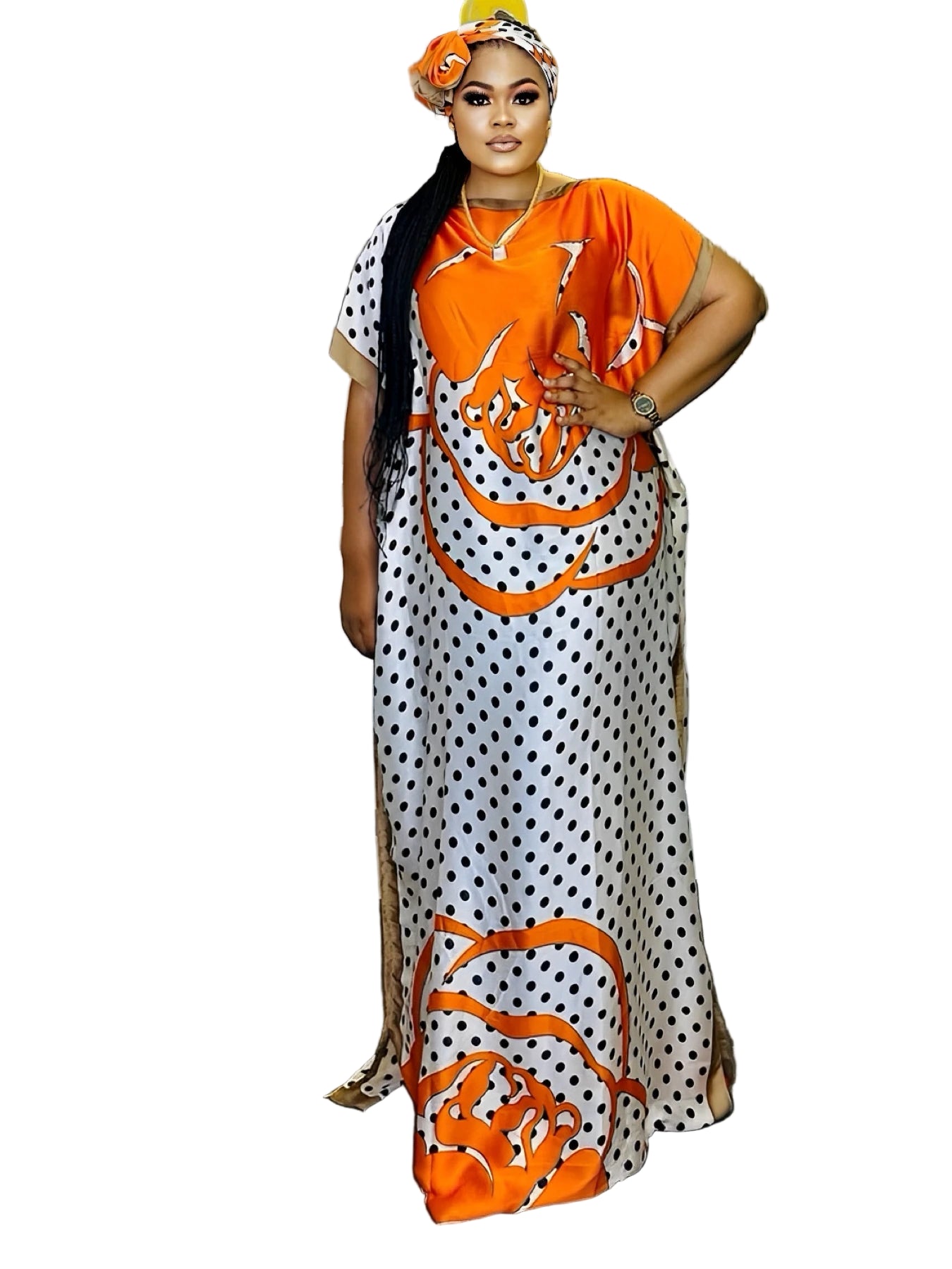 Embrace effortless elegance with this stunning round-necked kaftan dress, designed for the modern woman who values both comfort and style. The dramatic bat sleeves create a flattering silhouette while the loose-fitting cut allows for unrestricted movement throughout your day. Crafted to transition seamlessly from casual outings to relaxed gatherings, this versatile piece pairs perfectly with the included scarf for added dimension and sophistication. A wardrobe essential that combines fashion-forward design with all-day wearability.