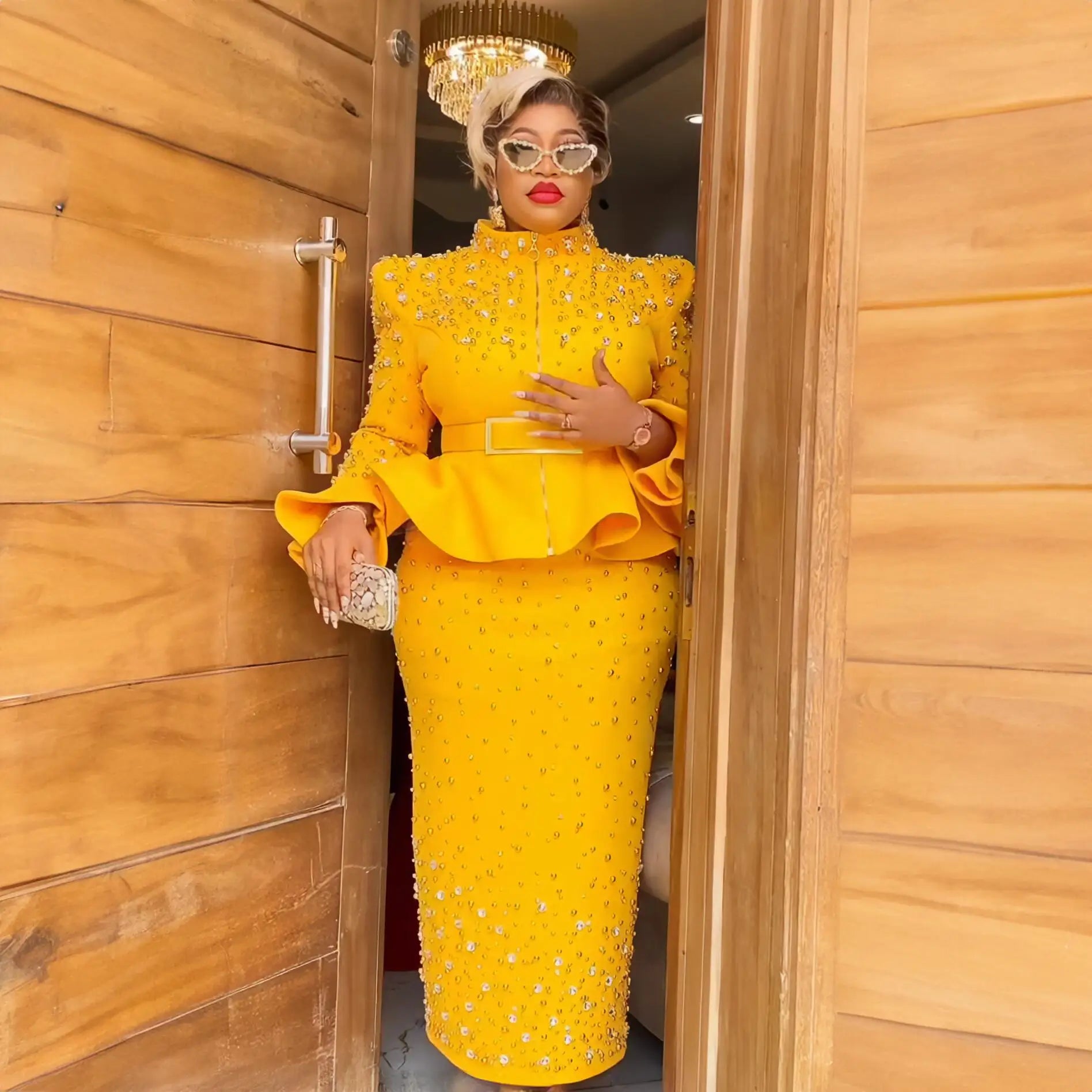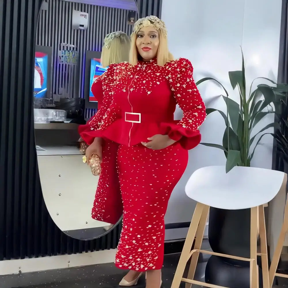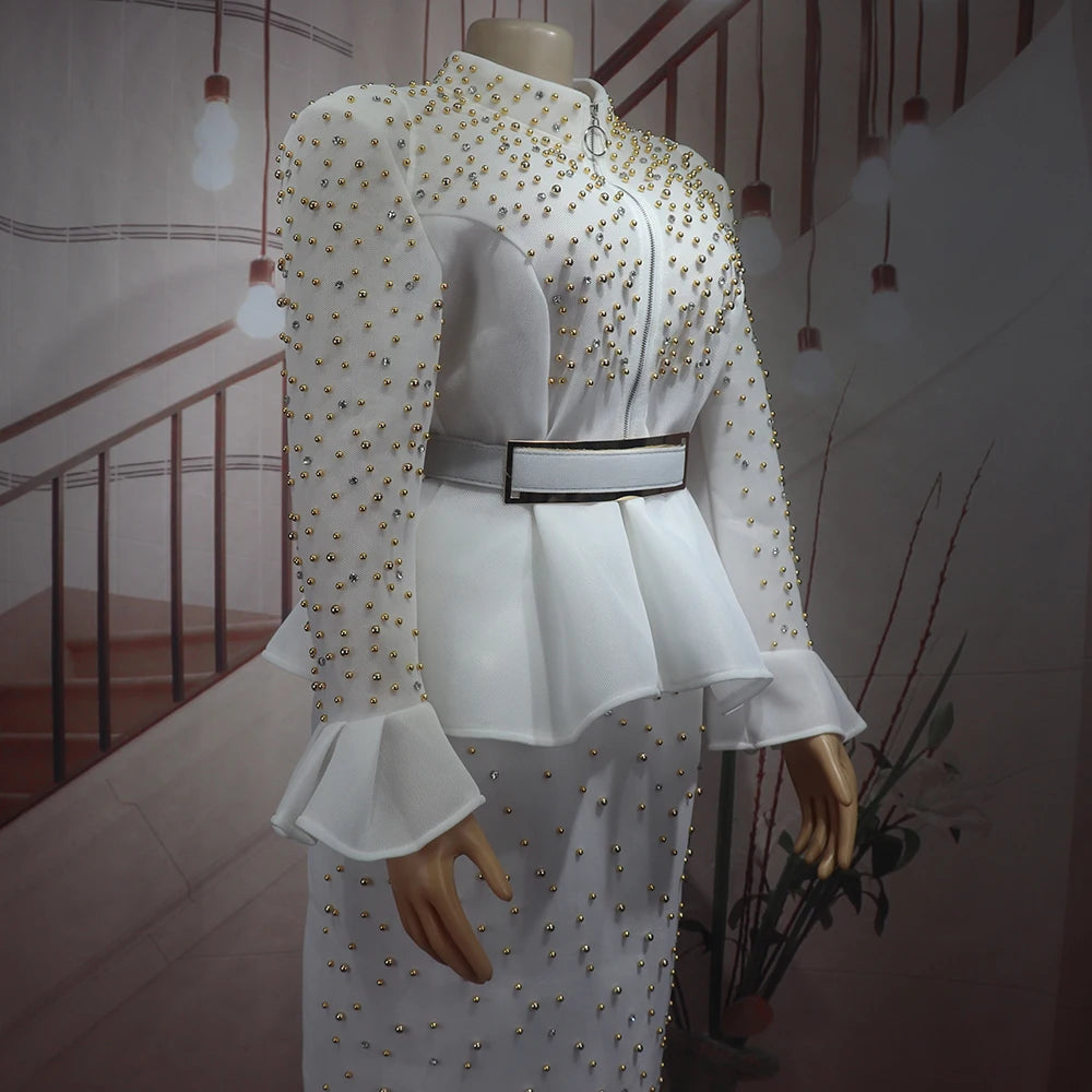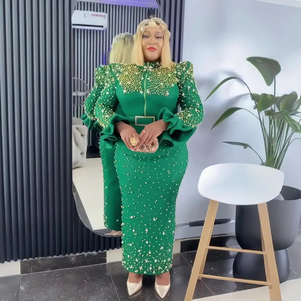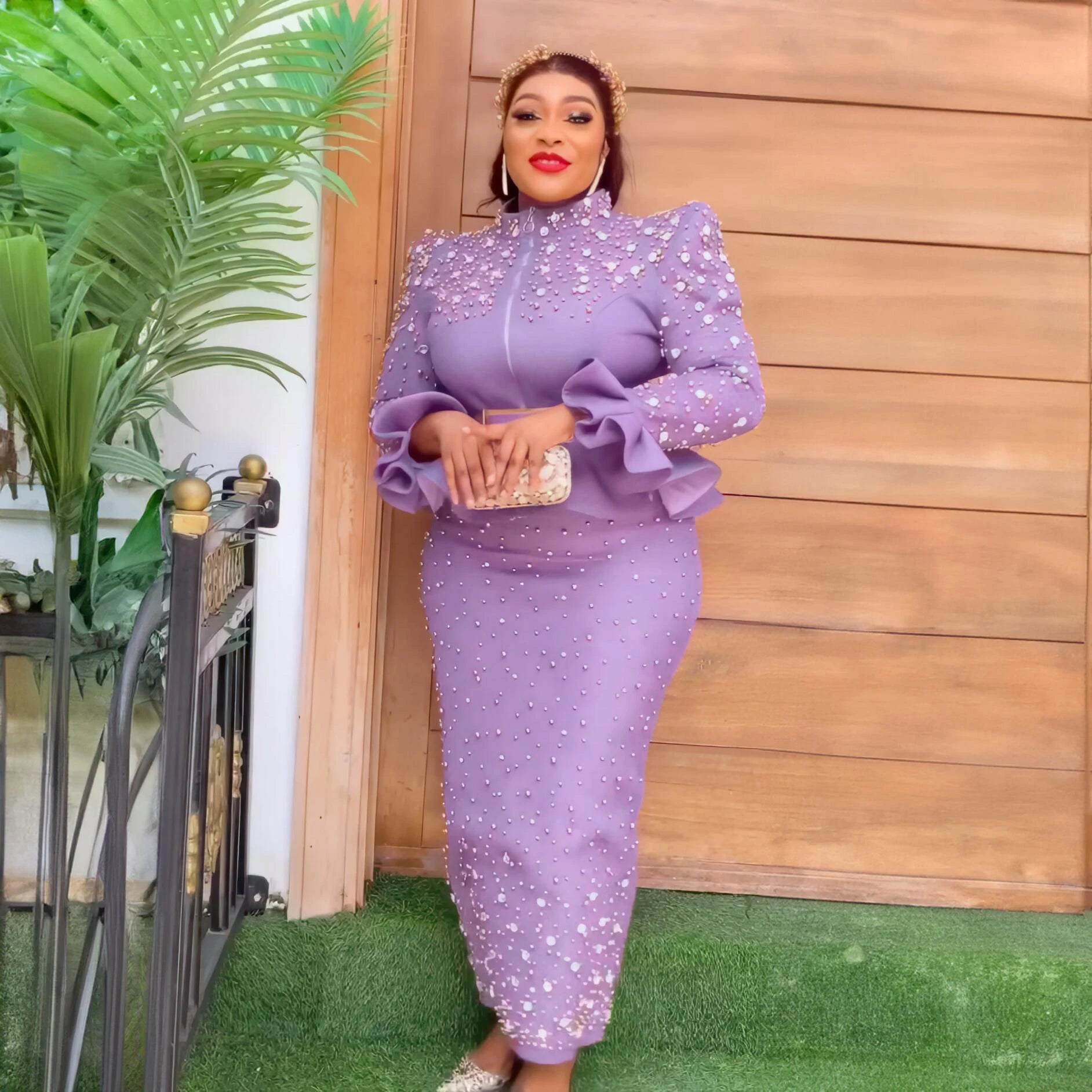 Elevate your wardrobe with this stunning luxury dress suit that seamlessly blends sophistication with cultural elegance. Crafted from premium mesh fabric, this piece features intricate rhinestone embellishments that catch the light beautifully, making you the center of attention at any occasion. The refined tailoring flatters your silhouette while the luxurious materials ensure all-day comfort and confidence. Perfect for special events, celebrations, or when you want to make a bold fashion statement, this African-inspired dress combines timeless elegance with contemporary style. Transform your look and express your unique sense of fashion with this exquisite piece that celebrates beauty and craftsmanship.